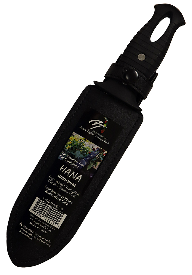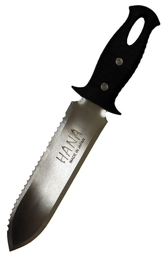 Description: Hori-Hori means “dig-dig”! These knives are multipurpose – weed, plant, divide perennials, even cut sod. They are beveled for shoveling and have a serrated edge for sawing. The blade is marked for depth measurement for easy planting. This tool has become a favorite amongst Master Gardeners! Reinforced vinyl sheath included.